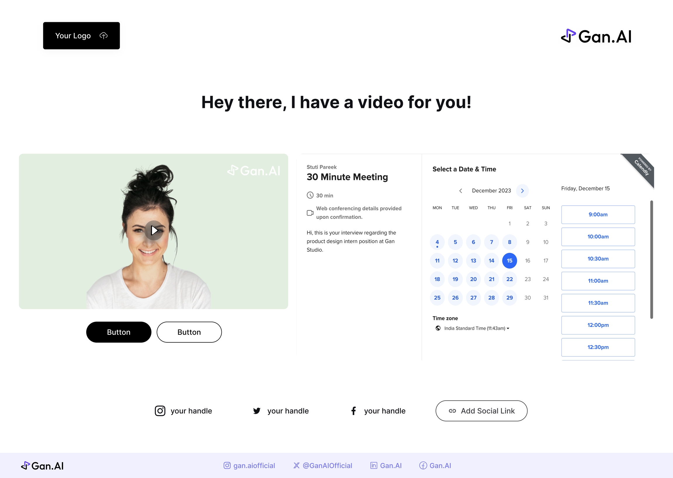 Create branded video landing pages with Gan.ai. Boost engagement through personalized, immersive experiences.